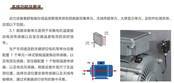 動(dòng)力設(shè)備集群智能在線監(jiān)測系統(tǒng)是通過智能遠(yuǎn)程運(yùn)維系統(tǒng)(RMS)完成工業(yè)生產(chǎn)線的電機(jī)、減速機(jī)、風(fēng)機(jī)、高低壓變電、泵閥等設(shè)備運(yùn)行狀態(tài)信息及故障信息檢測,通過檢測設(shè)備的溫度、震動(dòng)、轉(zhuǎn)速、電流、電壓等數(shù)據(jù)實(shí)時(shí)分析處理運(yùn)行設(shè)備狀況,同時(shí)通過信息報(bào)警推送,智能分析設(shè)備運(yùn)行狀況并實(shí)時(shí)報(bào)警等功能,能迅速找到解決問題的方法。通過在線檢測系統(tǒng)全面實(shí)現(xiàn)對關(guān)鍵設(shè)備的全生命周期管理,提高了設(shè)備有效運(yùn)維時(shí)間和效率,降低設(shè)備運(yùn)維成本,降低設(shè)備故障時(shí)間,減少現(xiàn)場人員維護(hù)量,降低維護(hù)人員的依賴性。